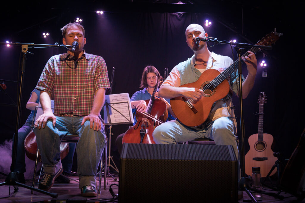 Staudinger arbeitet mit wechselnden Musiker:innen zusammen, die das Projekt für kürzere oder längere Zeit begleiten und die Songs von We Love Silence in unterschiedlichen Besetzungen auf die Bühne bringen. Die Stücke sind nicht festgeschrieben, sondern bleiben beweglich. Sie verändern sich mit den Menschen, dem Raum und dem Moment. So entstehen Konzerte in wechselnden Formaten – Solo, im Duo, Trio, in größerer Formation oder gemeinsam mit einem Chor. Jede Konstellation eröffnet eine neue Perspektive, jedes Konzert klingt ein wenig anders.